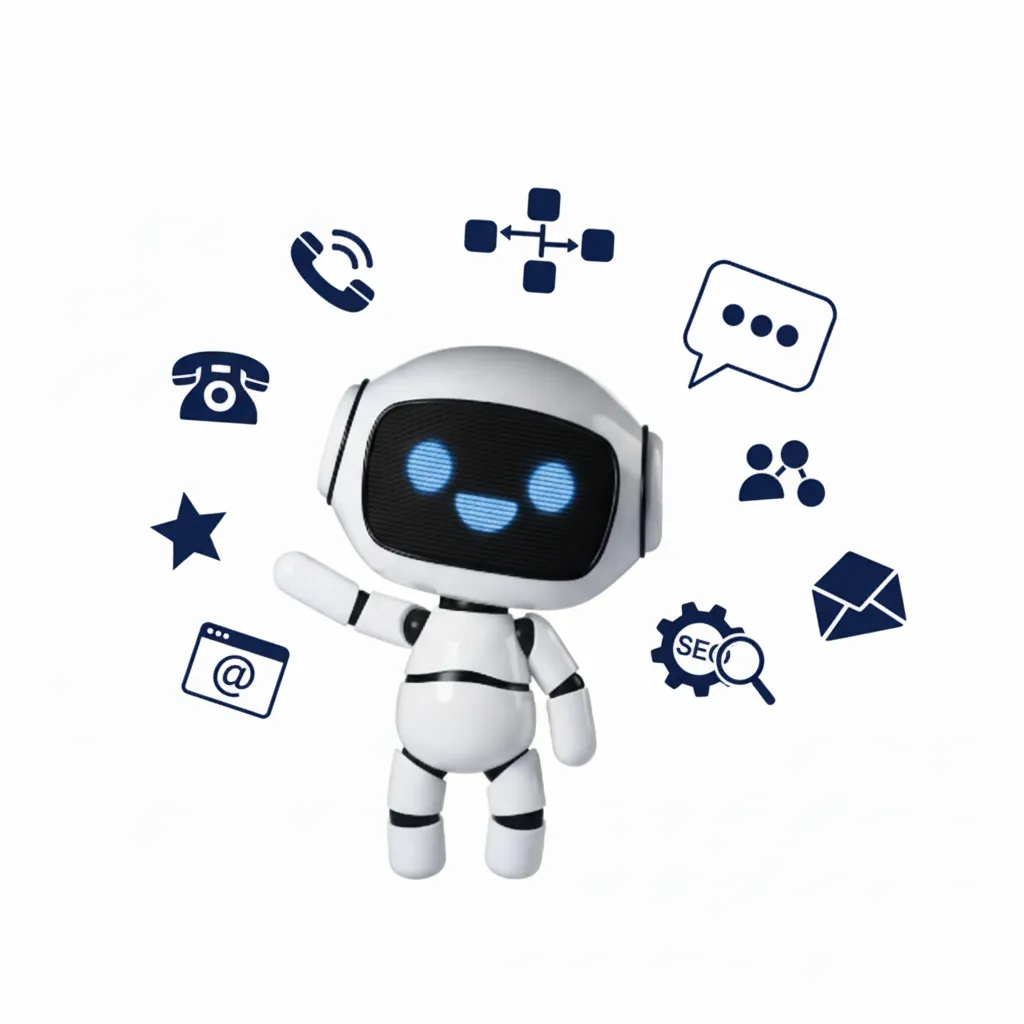 • Wir übernehmen das komplette Setup von Voice‑, Chat‑, Review‑, Funnel‑ und Content‑AI.